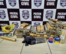 A Polícia Civil do Paraná (PCPR) prendeu em flagrante um casal por tráfico de drogas, na segunda-feira (21), em Foz do Iguaçu. O homem de 36 anos e a mulher, de 35 anos, foram flagrados com 72 quilos de maconha na casa deles, localizada no bairro Jardim Ipê. Parte do entorpecente estava guardado em um guarda-roupa.