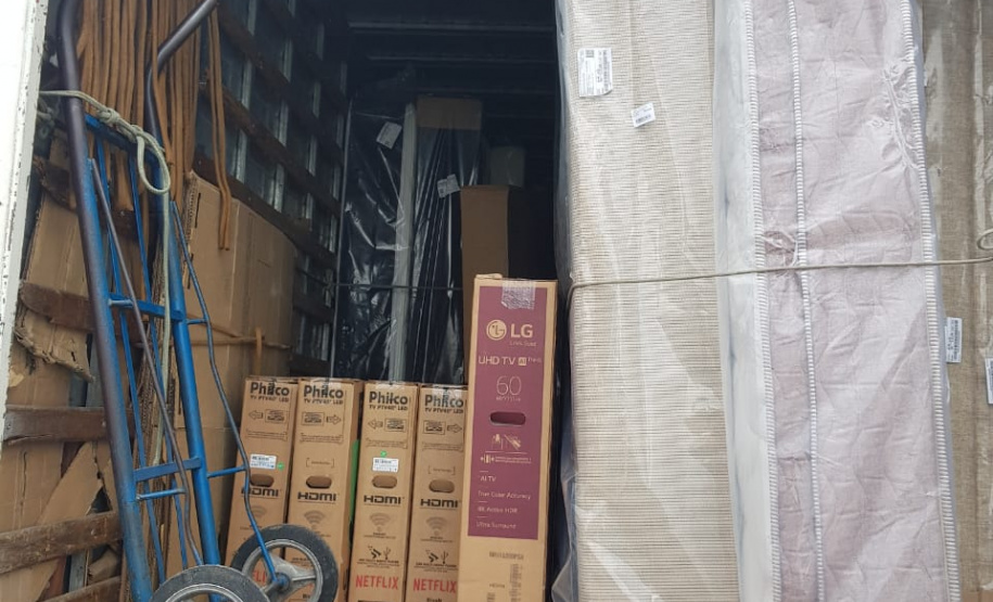 Todo o material que estava dentro do caminhão baú foi recuperado pela PCPR. Haviam eletrônicos, eletrodomésticos, camas e sofás.