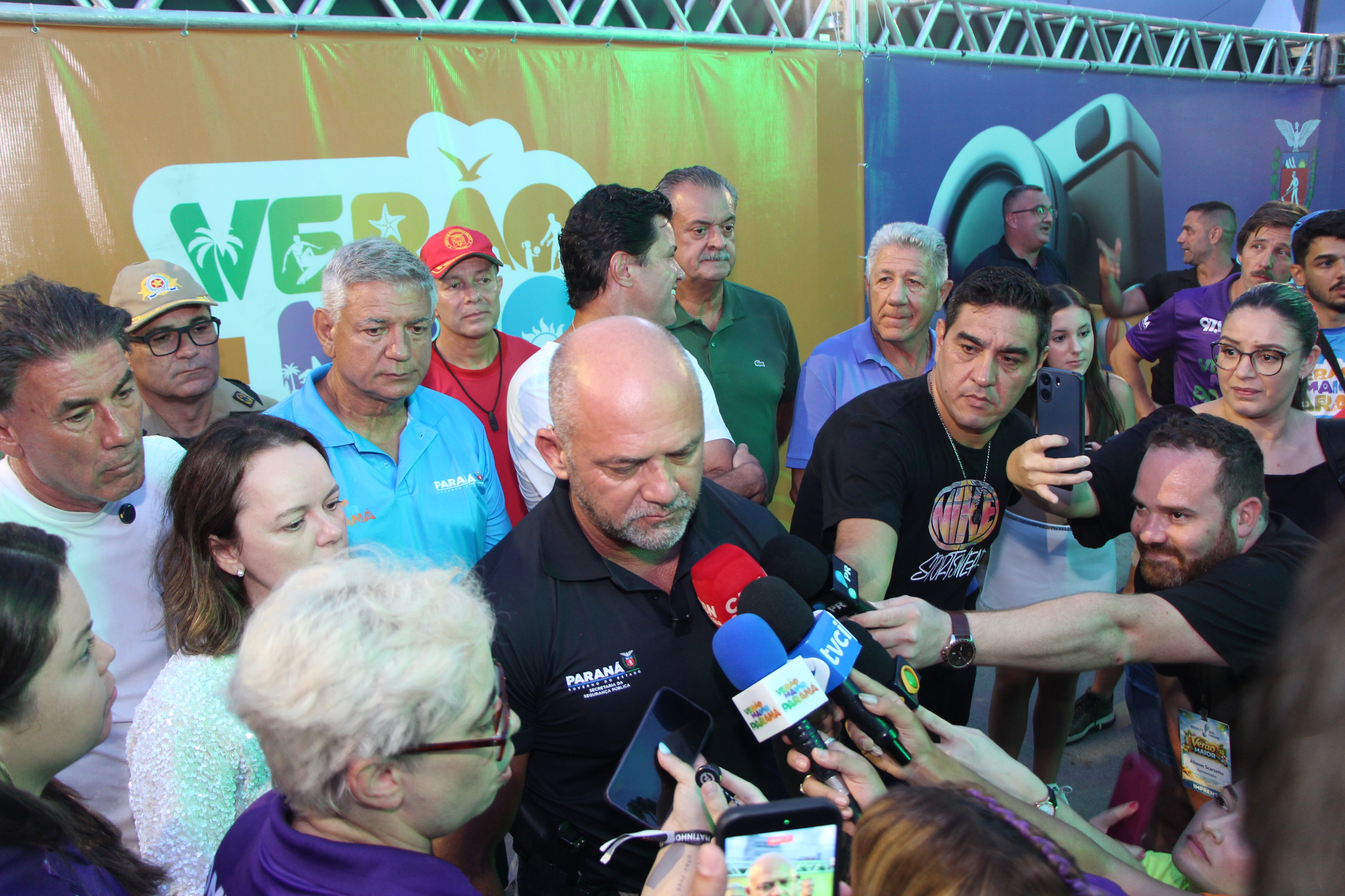 Antes do início do grande show da noite, uma coletiva de imprensa reuniu as principais autoridades envolvidas na organização do Verão Maior Paraná, entre elas o Comandante-Geral da Polícia Militar do Paraná, coronel Jefferson Silva, e o Secretário da Segurança Pública do Paraná, coronel Hudson Leôncio Teixeira, ocasião em que foram destacadas as ações integradas de segurança e o planejamento adotado para garantir tranquilidade ao público presente.
