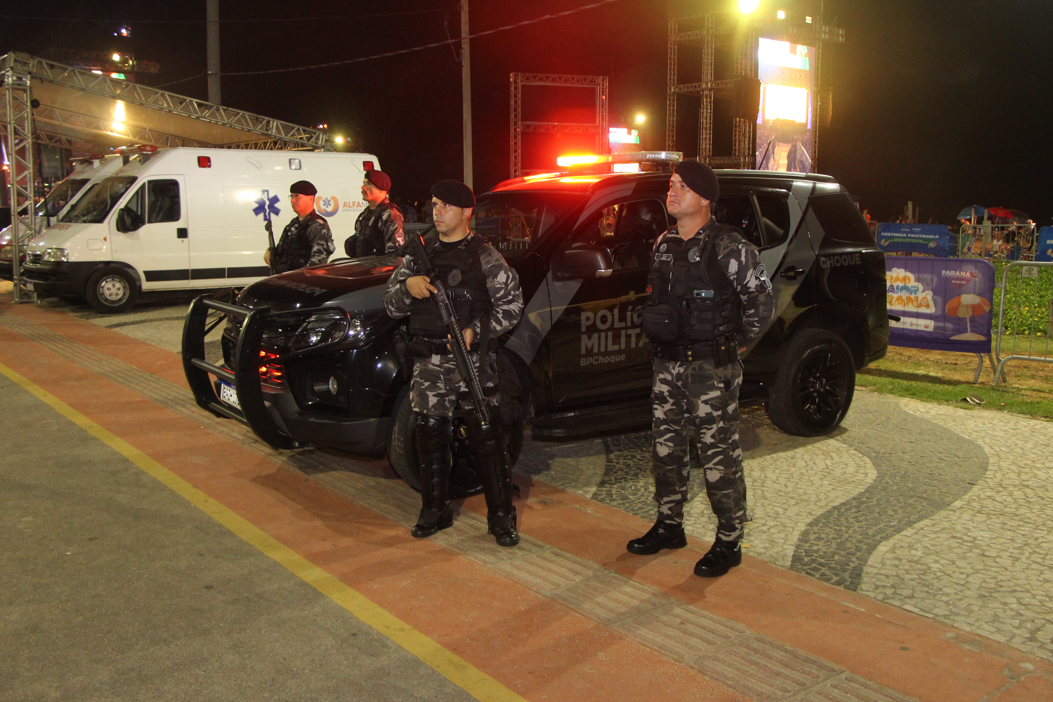 Desde as primeiras horas da madrugada desta sexta-feira, a Polícia Militar já vinha atuando de forma preventiva para garantir a segurança de fãs e veranistas que começaram a se concentrar em frente ao palco principal ainda no início do dia. No fim da tarde, uma atração musical promovida pela Banda de Música da PMPR embalou os veranistas em uma apresentação gratuita realizada na Avenida Atlântica, proporcionando momentos de lazer e integração com a comunidade por meio de um repertório repleto de sucessos da música nacional.