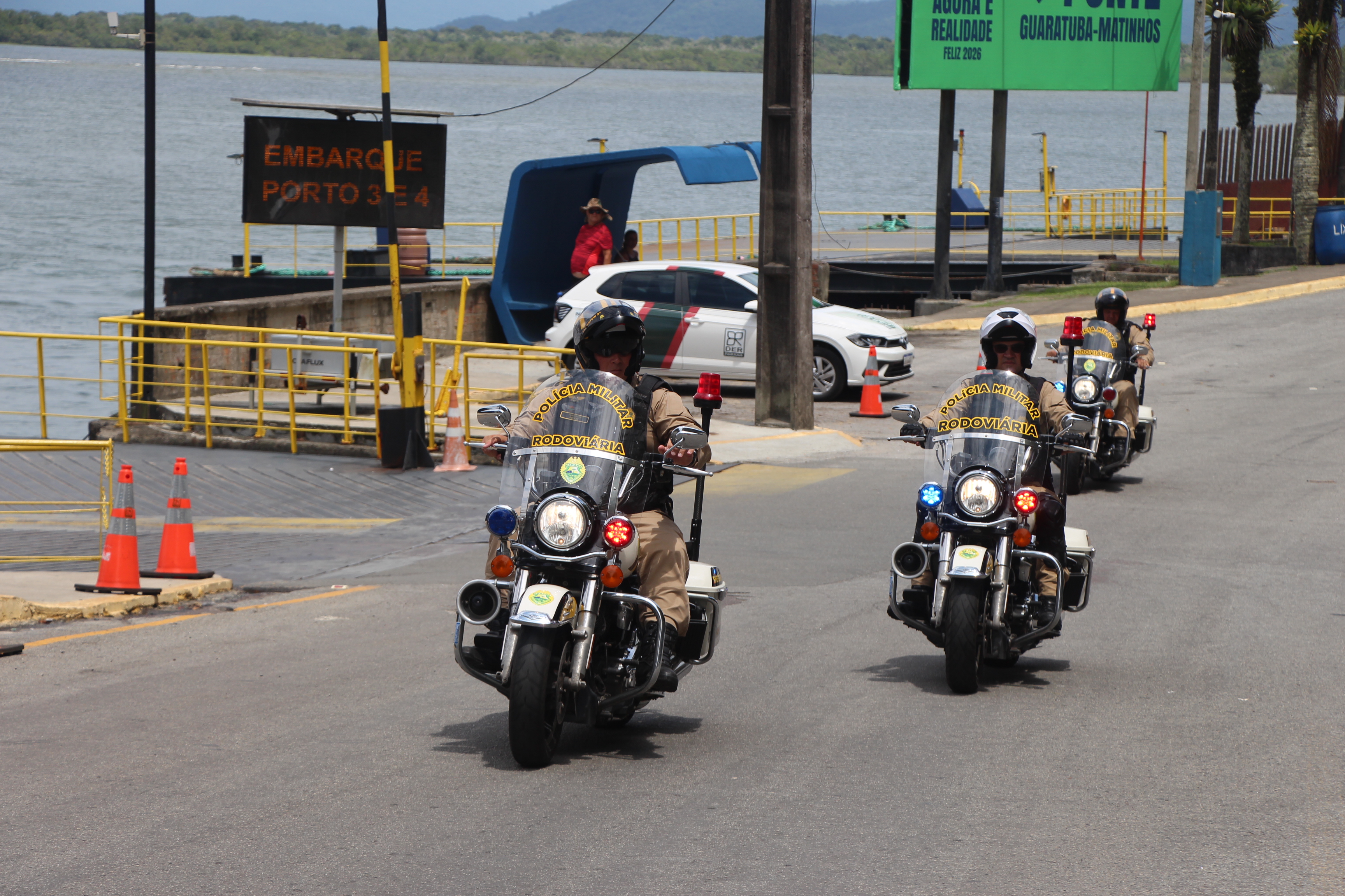 A Polícia Militar do Paraná (PMPR) realizou na manhã desta quarta-feira (31) uma ação de proximidade e interação com a população no acesso ao ferry-boat, no sentido Guaratuba, no litoral do Estado. A iniciativa integrou o conjunto de atividades preventivas desenvolvidas pela corporação durante o período de maior fluxo de veranistas na região.