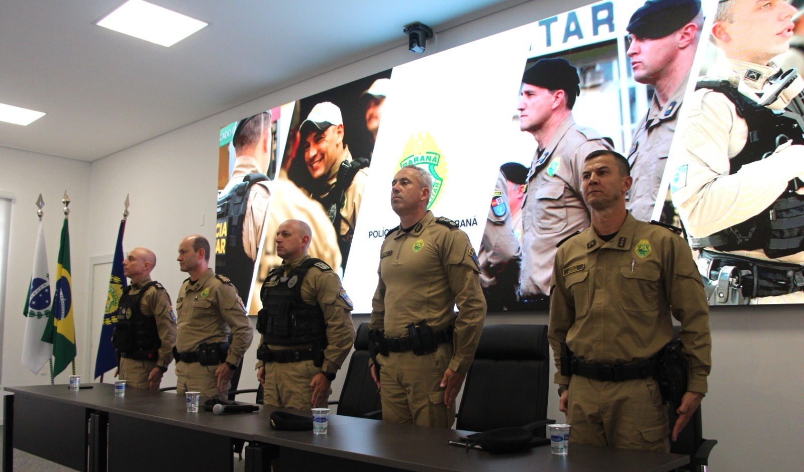 PRESENÇAS – Também estiveram presentes na solenidade o chefe do Estado-Maior da PMPR, coronel Eleandro Azevedo; o diretor de Educação Corporativa, coronel Marco Antonio da Silva; o diretor da Diretoria de Gestão de Pessoas, coronel Juliano Caciatori; o comandante do Comando de Missões Especiais, tenente-coronel Alexandre Lopes Dias; e o corregedor-geral da PMPR, coronel Alfredo Euclides Dias Netto.