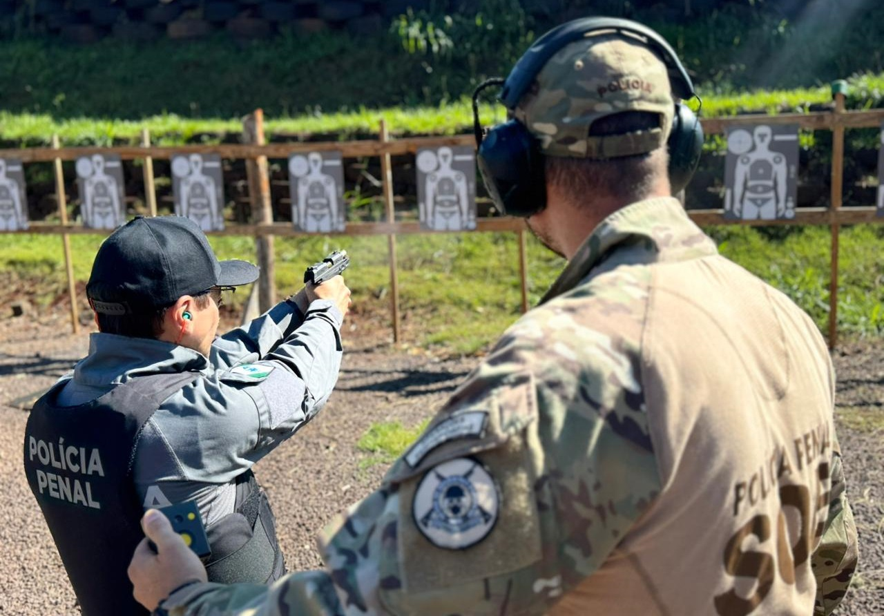 Policiais penais da Regional Administrativa de Cascavel passaram por uma importante capacitação operacional. Realizado nesta segunda-feira (30) e quarta-feira (1°), o curso de tiro com pistola calibre .40 reuniu cerca de 40 profissionais, distribuídos em quatro turmas, nos períodos da manhã e da tarde. A ação foi promovida pela Divisão de Operações de Segurança da Regional de Cascavel, com apoio da Escola de Formação e Aperfeiçoamento Penitenciário (Espen) local.