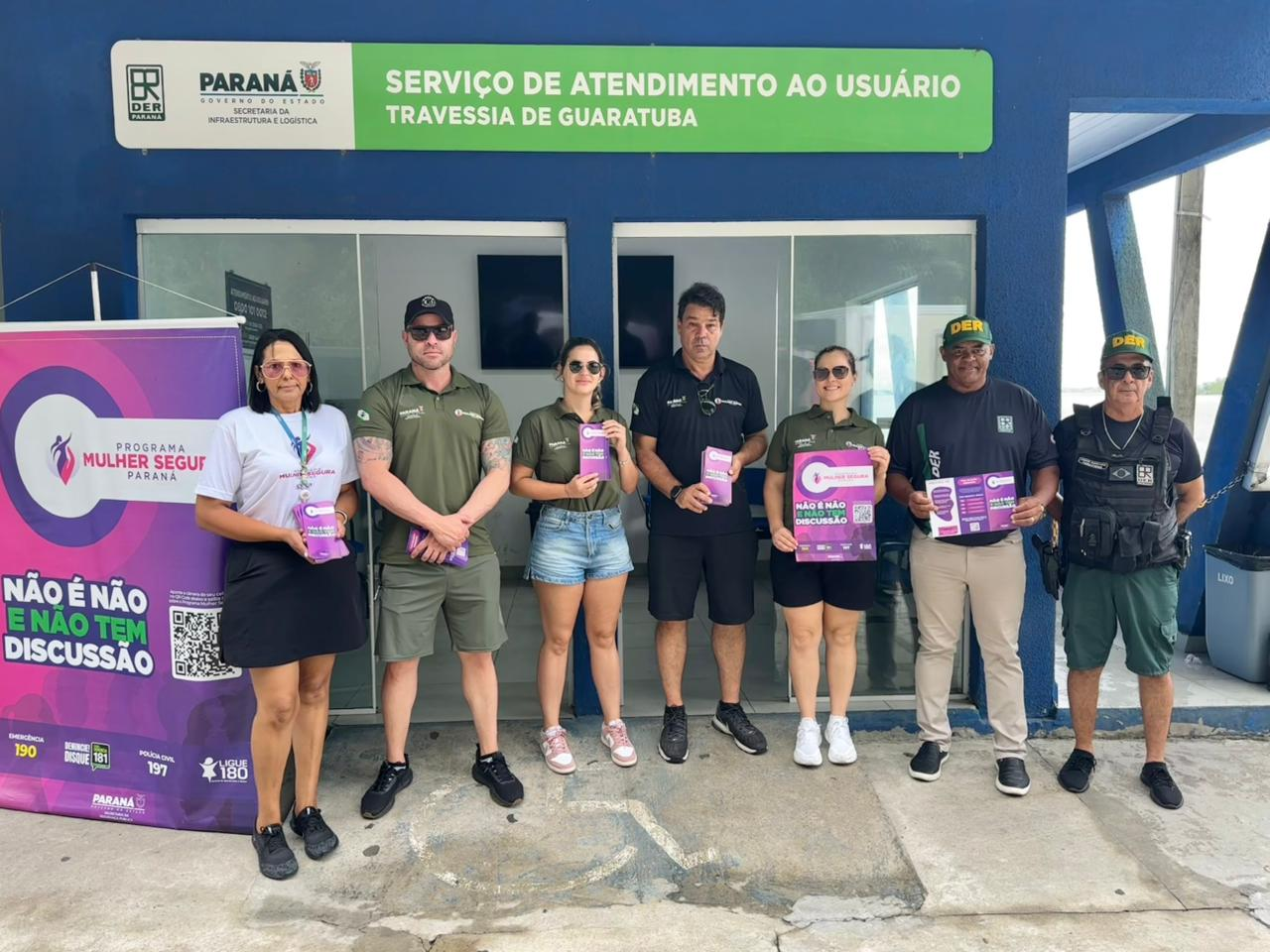 O Programa Mulher Segura realizou, na sexta-feira (13), em Guaratuba, e no sábado (14), em Matinhos, ações de conscientização durante o Carnaval no Litoral do Paraná. As abordagens ocorreram em pontos de grande circulação, como rodoviárias, ferry boat e a orla das praias.