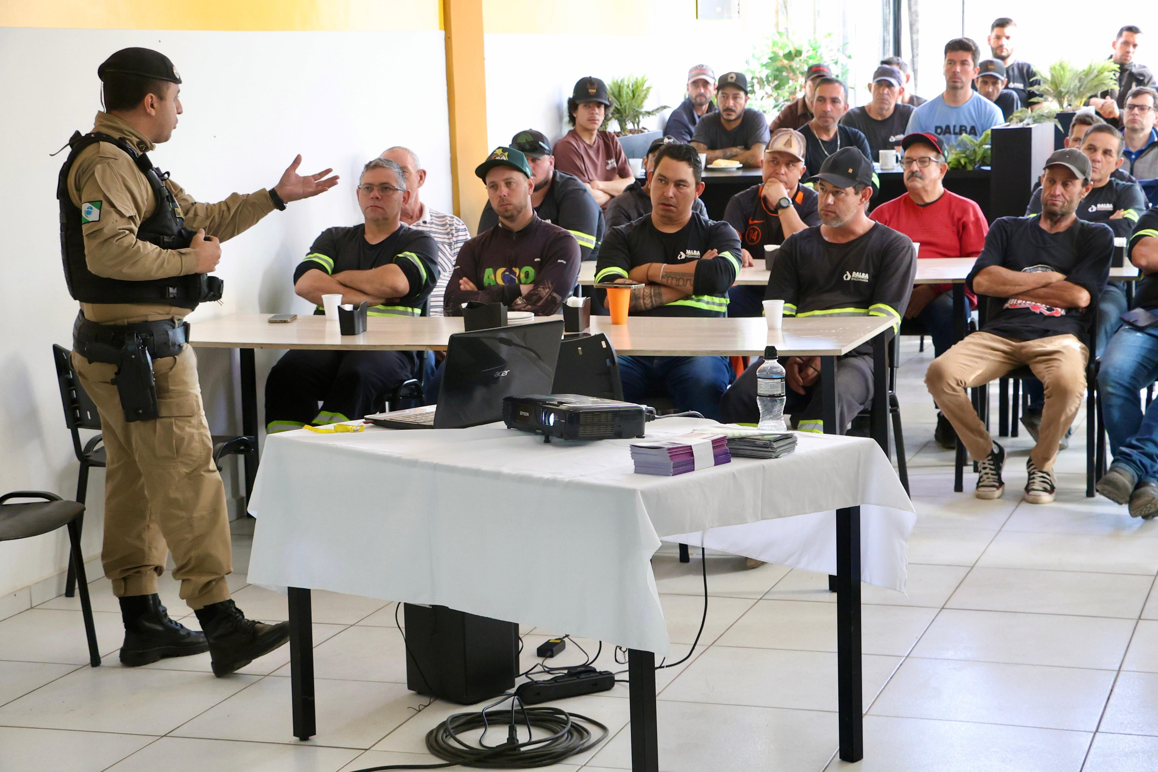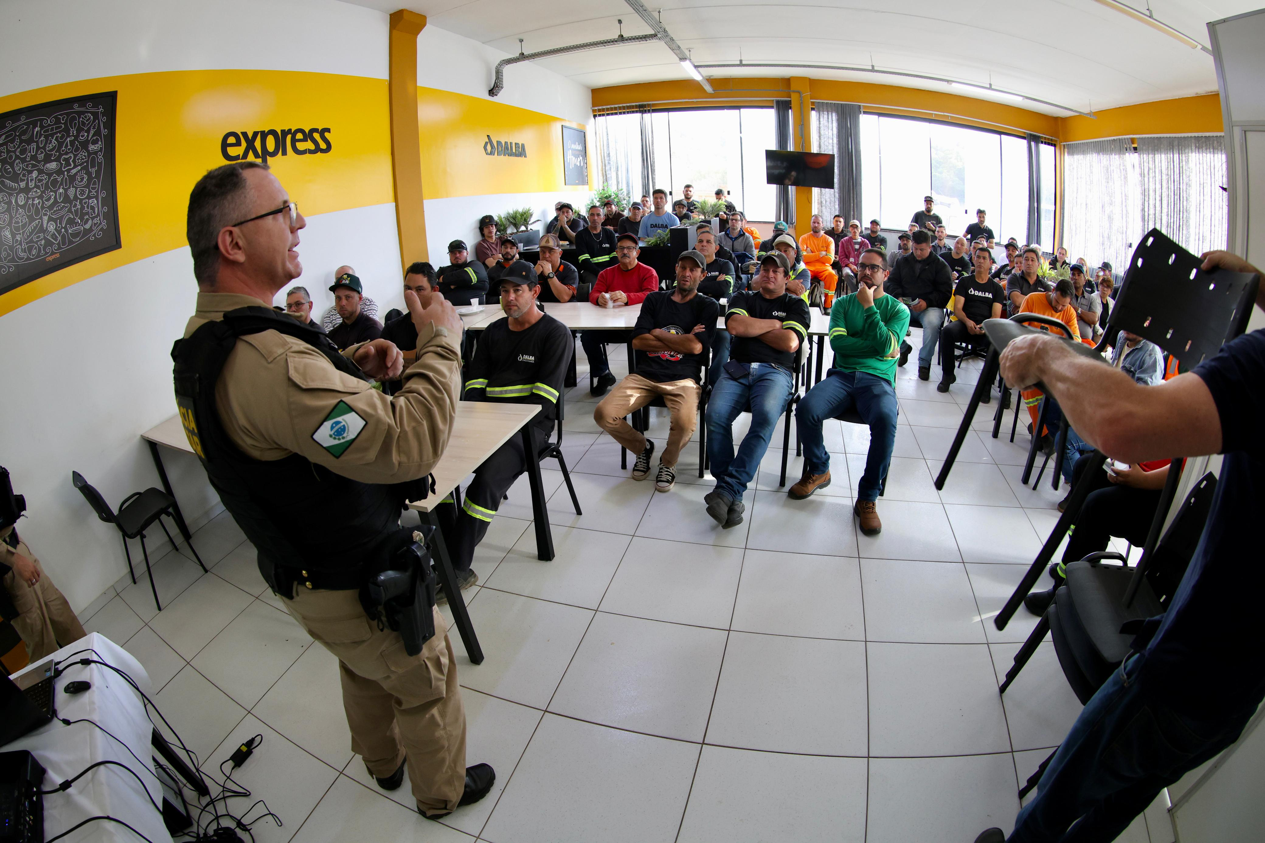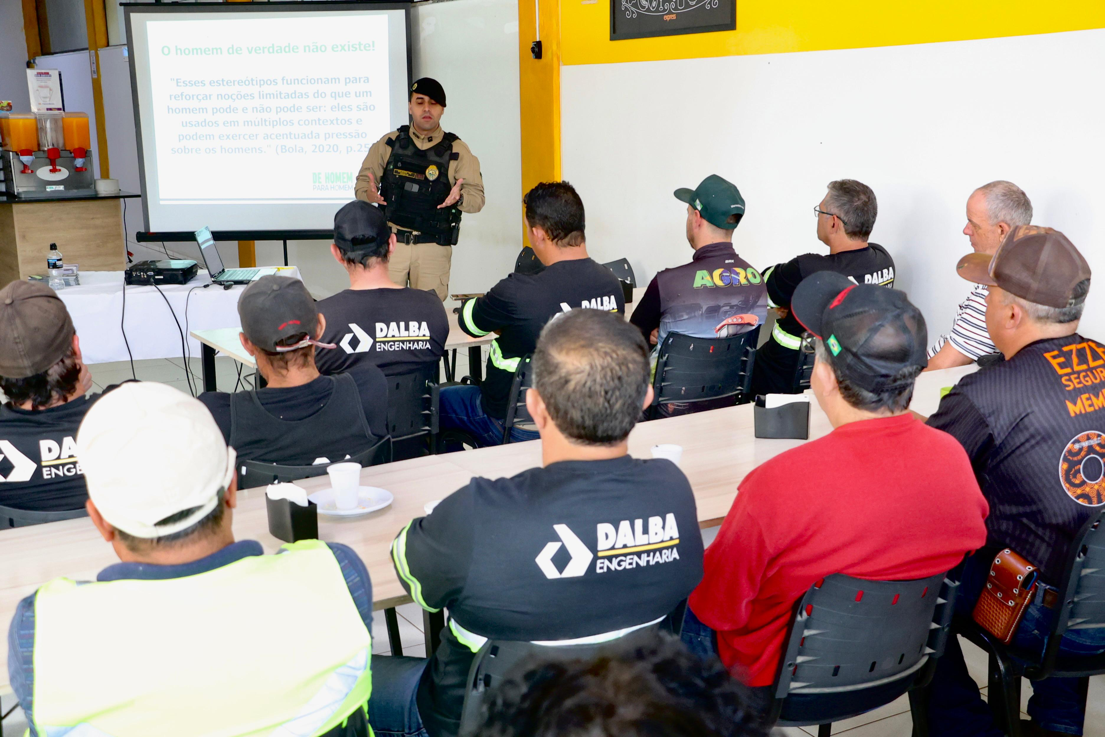 Cerca de 60 funcionários da Dalba Engenharia participaram, na sexta-feira (7), em Guarapuava, de uma palestra do Programa Mulher Segura, da Secretaria da Segurança Pública do Paraná (Sesp). A atividade faz parte do projeto “De Homem para Homem” e teve como foco sensibilizar o público masculino sobre atitudes e comportamentos que ajudam a prevenir a violência contra a mulher.