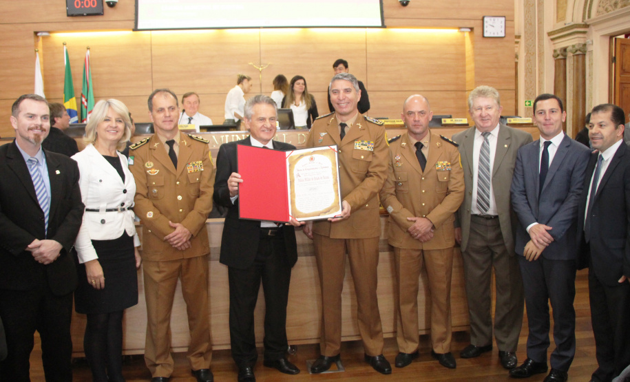 A Câmara Municipal de Curitiba fez uma sessão solene para homenagear a Polícia Militar pelos avanços em segurança pública nesta quarta-feira (19/06). Desde os primeiros quatro meses deste ano, Curitiba já sentiu os reflexos da mudança de policiamento e novas estratégias aplicadas pelas unidades do 1º Comando Regional da PM (1º CRPM). O trabalho rendeu uma redução de 38% nos homicídios na Capital em comparação com o primeiro quadrimestre do ano passado.