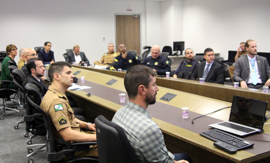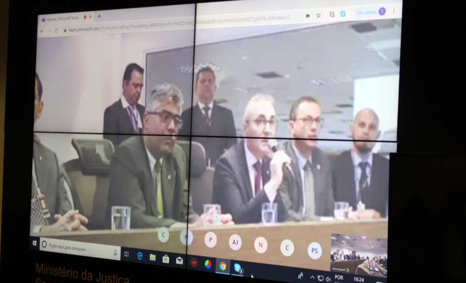 Na tarde desta sexta-feira (30/08), o Secretário da Segurança Pública, coronel Romulo Marinho Soares, juntamente com os pontos focais e representantes de toda força tarefa envolvida no projeto-piloto “Em Frente Brasil”, iniciado na manhã de hoje, no município de São José dos Pinhais, Região Metropolitana de Curitiba, participaram de uma vídeo-conferência com as forças tarefa dos outros quatro estados envolvidos e mais a coordenação nacional, em Brasília, para trocarem informações sobre o início das atividades.