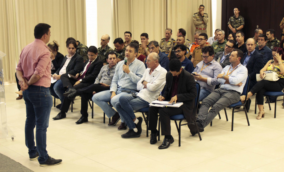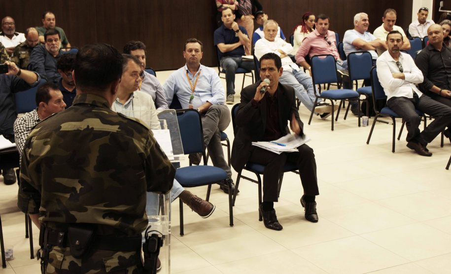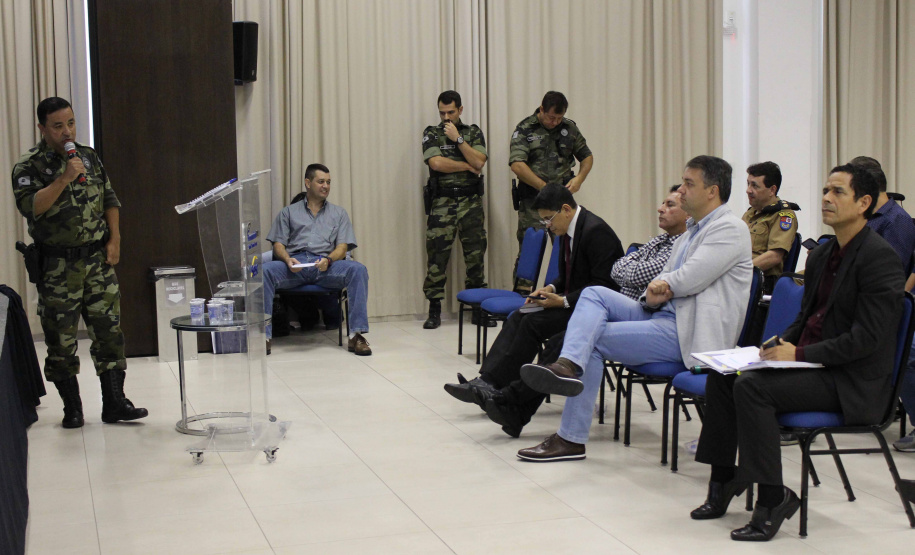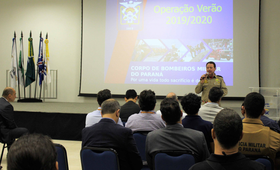 PRESENÇAS - Estiveram presentes na reunião, além do coordenador e Secretário da Segurança, coronel Marinho, o coordenador-adjunto da Operação Verão 2019/2020, coronel Erich Wagner Osternack; o prefeito de Guaratuba, Roberto Justus; o prefeito de Matinhos, Rui Hauer; o prefeito de Morretes, Osmair Costa Coelho; o chefe da Defesa Civil, coronel Ricardo Silva; o comandante o 1º Comando Regional do Corpo de Bombeiros, tenente-coronel Maurício Genero; o Comandante do 9º Batalhão de Polícia Militar, tenente-coronel Josemar Rogério Biscaia; o Comandante da Polícia Ambiental-Força Verde (BPAmb-FV), tenente-coronel Adilson Luiz Correa dos Santos; o Comandante do 8º Grupamento dos Bombeiros, major Jonas Emmanuel Benghi Pinto; o subcomandante do Batalhão de Polícia Rodoviária, major Marcio Antônio Machado Pereira.