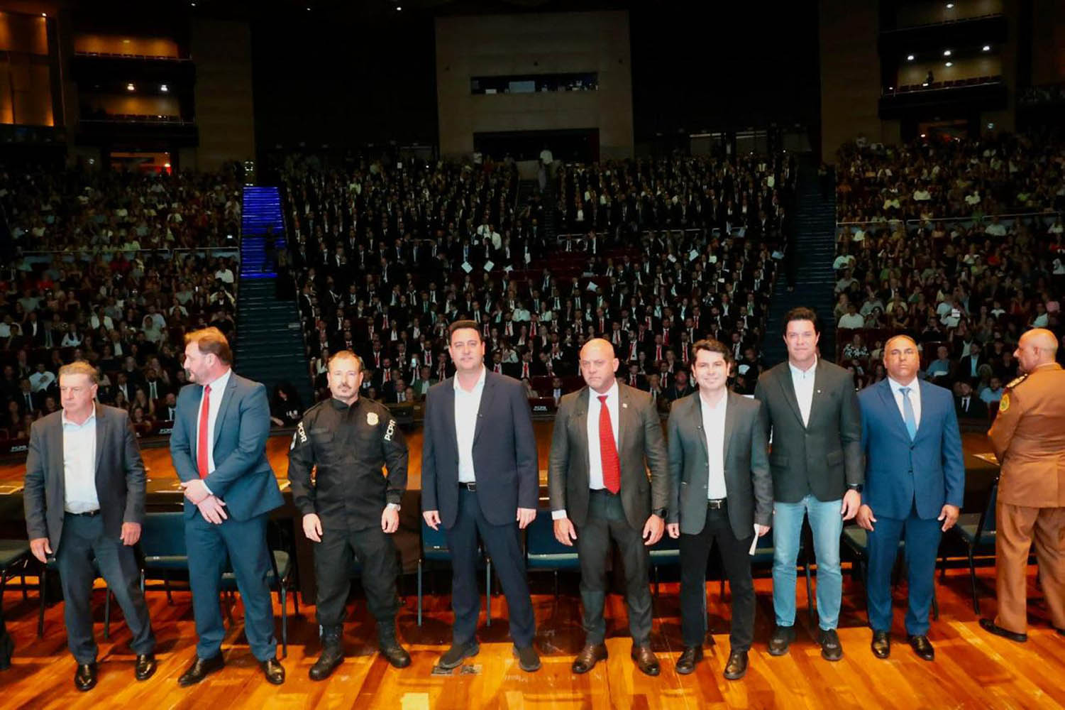 PRESENÇAS – Participaram também da formatura Guto Silva, secretário das Cidades; João Carlos Ortega, chefe da Casa Civil; Alexandre Curi, presidente da Assembleia Legislativa do Paraná; Gilberto Giacoia, procurador de Justiça, representando o procurador-geral Francisco Zanicotti; o desembargador Celso Jair Mainardi, representante do Tribunal de Justiça do Paraná; o coronel Paulo Roberto Lima, representando o coronel Jefferson Silva, comandante da Polícia Militar do Paraná; Marcelo Lemos de Oliveira, corregedor-geral da Polícia Civil do Paraná; Rogério Orem de Andrade, representando Ananda Chalegre, diretora-geral da Polícia Penal do Paraná; o coronel Emerson José Guimarães Ferreira, representando o coronel Antônio Geraldo Hiller Lino, comandante-geral do CBMPR; Ciro José Cardoso Pimenta, diretor-geral da Polícia Científica do Paraná; Valderes Luiz Scalco, diretor da Escola Superior de Polícia Civil do Paraná; e Marcus Vinícius Michelotto, diretor do Instituto de Identificação do Paraná.