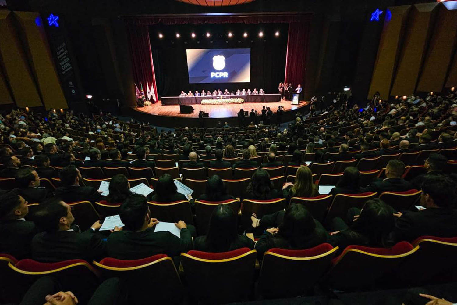 A Polícia Civil do Paraná (PCPR) celebrou na noite desta quinta-feira (11) a formatura de 555 novos integrantes para seu quadro de servidores. Em evento realizado no Teatro Positivo, em Curitiba, com a presença do governador Carlos Massa Ratinho Junior, 442 agentes de polícia judiciária, 36 papiloscopistas e 77 delegados finalizaram oficialmente o Curso de Formação Técnico Profissional na Escola Superior da Polícia Civil (ESPC), que teve duração de 18 semanas. Esse grupo, que fez parte da maior contratação da história da PCPR, anunciada em agosto, agora passa a reforçar as unidades da instituição em todo o Estado.
