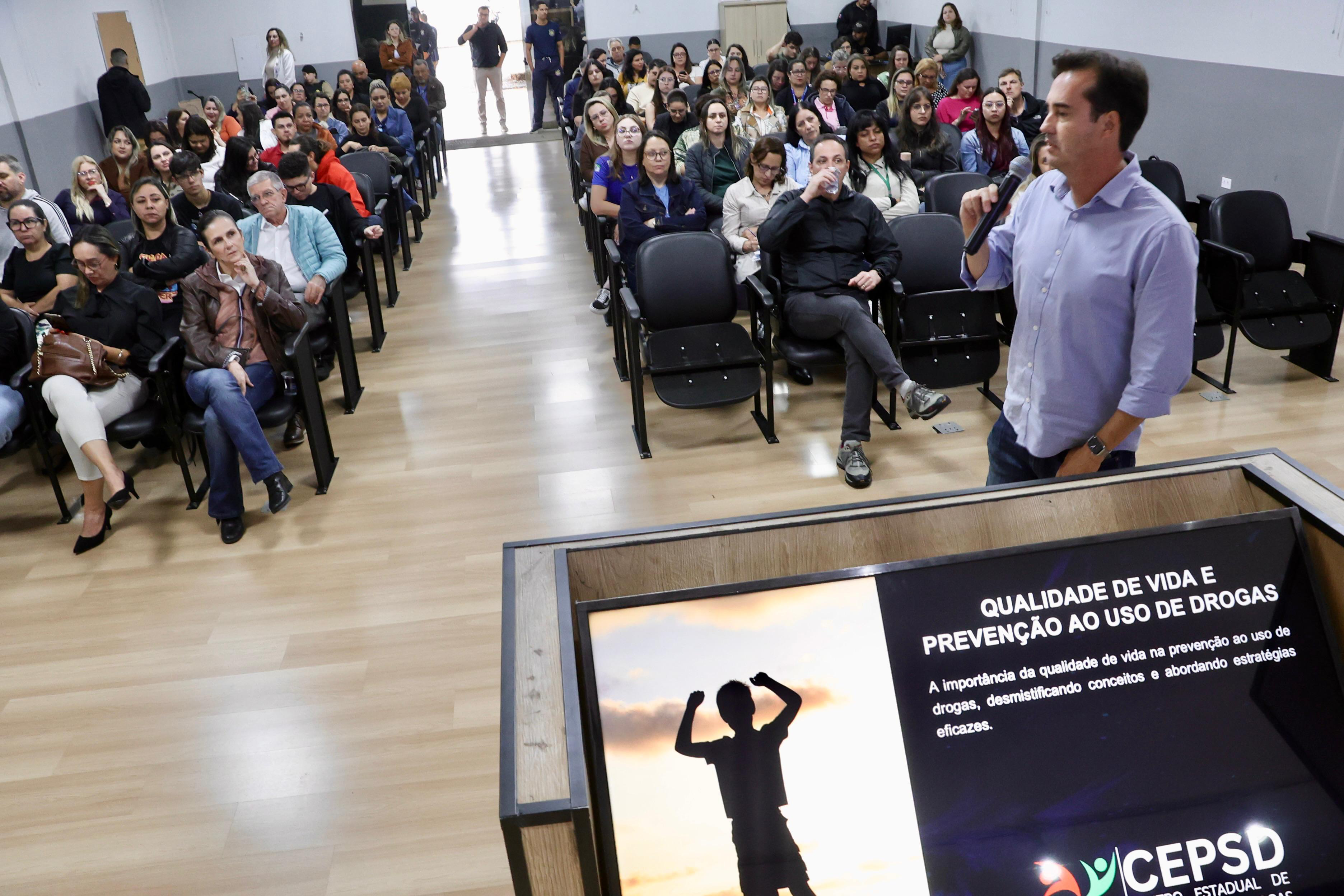 Durante as apresentações, o coordenador do Centro Estadual de Política sobre Drogas (CEPSD), delegado Renato Figueiroa, e o coordenador do Programa Mulher Segura, coronel Dalton Gean Perovano, abordaram temas relacionados à conscientização e à prevenção. Figueiroa destacou mitos e verdades sobre o consumo de entorpecentes, explicando que o cérebro humano segue em formação até os 24 anos, o que torna os adolescentes mais vulneráveis à influência social e ao desenvolvimento de dependência precoce. Também ressaltou que a maconha, embora natural, não é uma droga segura, podendo causar prejuízos à memória e ao aprendizado, além de aumentar o risco de ansiedade e esquizofrenia.