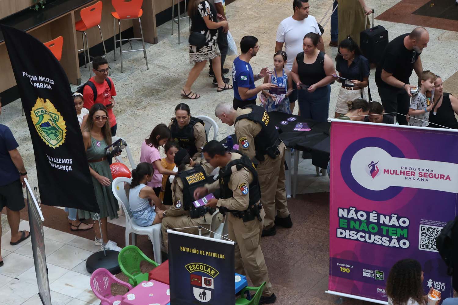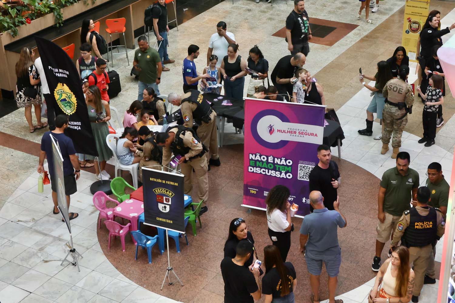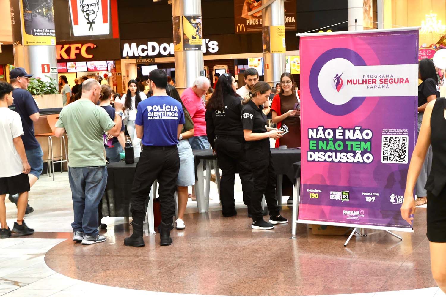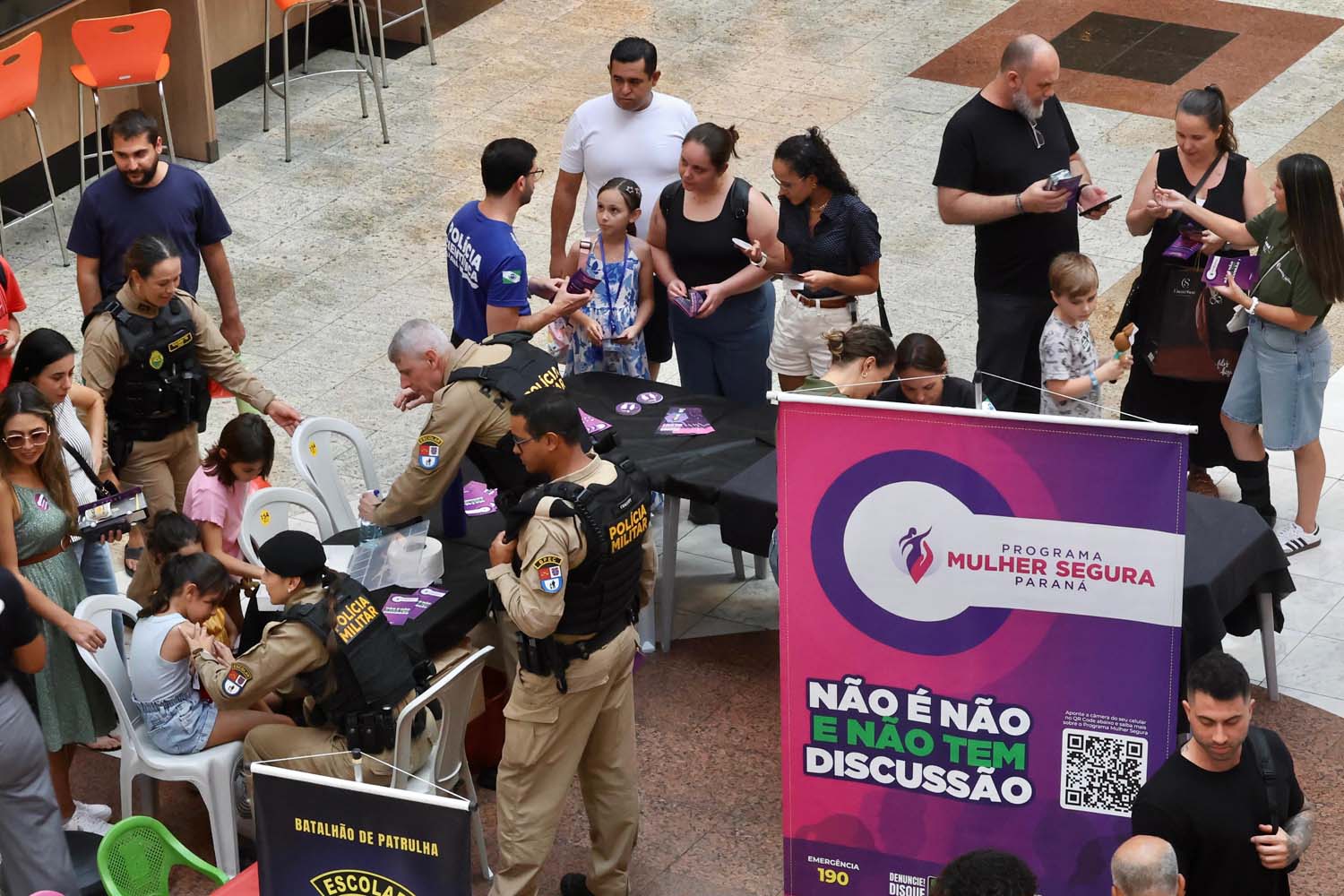 A Secretaria da Segurança Pública do Paraná (Sesp) promoveu, neste sábado (21), uma ação de conscientização no Shopping Estação, em Curitiba, reforçando as estratégias de prevenção e enfrentamento à violência contra a mulher. A iniciativa destacou o Código Internacional de Pedido de Ajuda, um gesto simples e silencioso que pode ser determinante para salvar vidas em situações de risco.
