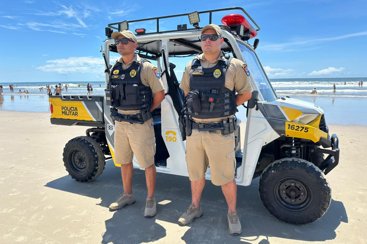 A Secretaria da Segurança Pública do Paraná (Sesp) reforça a proteção da população nas praias do litoral durante o Verão Maior Paraná com a intensificação das ações da Polícia Militar do Paraná (PMPR), como o uso de veículos especiais de patrulhamento em areia. A operação conta com veículos utilitários multitarefas (UTV) com tração 4x4, sistema de transmissão que permite maior mobilidade em terrenos arenosos e áreas de dunas, ampliando a presença policial nas faixas de areia dos balneários.