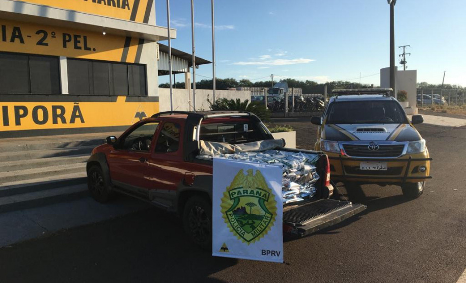 O veículo, uma Strada Adventure, de cor vermelha, foi abordado por volta das 7 horas, na PR-323, na altura do quilometro 345. Antes disso, de acordo com o informado pelo setor de Relações Públicas do Batalhão, o condutor teria recebido ordem de parada em frente ao Posto de Polícia Rodoviária, mas acabou empreendendo fuga.
